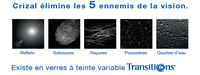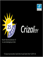 Essilor propose également Crizal®Sun UV, l’antireflet solaire qui élimine la réflexion de la lumière sur la face arrière du verre, possédant également l’efficacité anti-salissures, la résistance aux micros rayures et une protection UV semblable à celle de Crizal® Forte® UV.